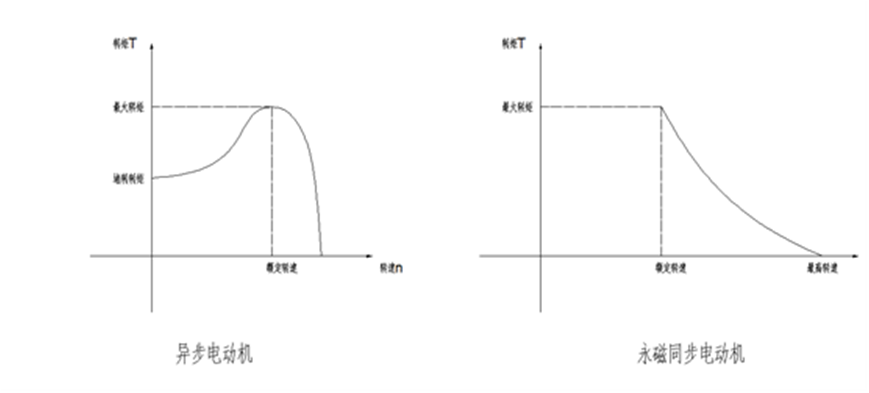 4、智能工業(yè)電機和異步電機在不同轉(zhuǎn)速情況下的轉(zhuǎn)矩比較如下: