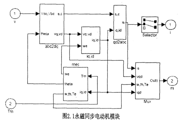 依據(jù)數(shù)學模型用Simulink樹立了永磁同步的模塊如圖2.1所示: