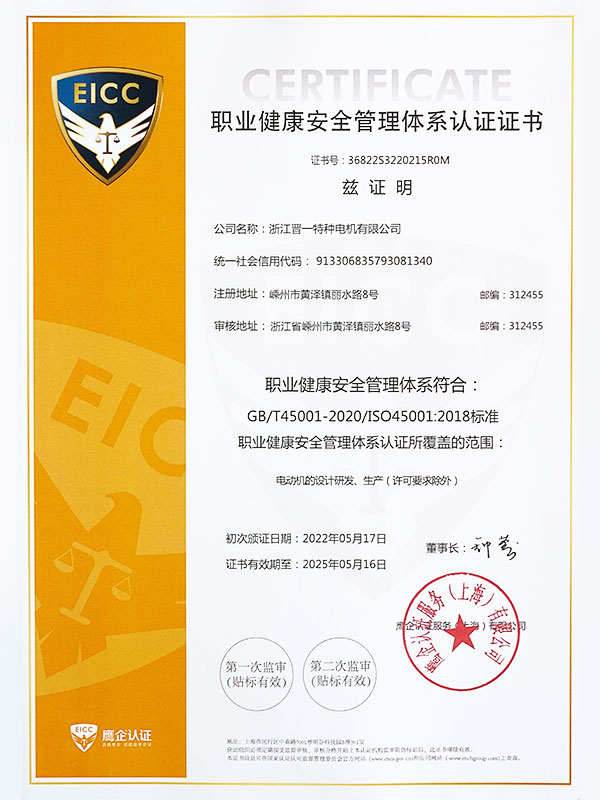 職業(yè)健康安全管理體系認(rèn)證證書(shū)